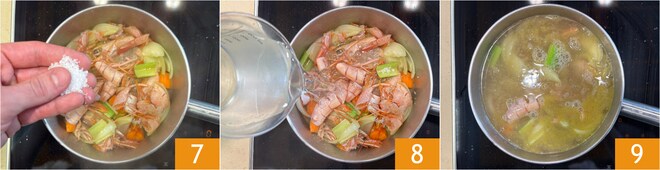 - Para el caldo de marisco