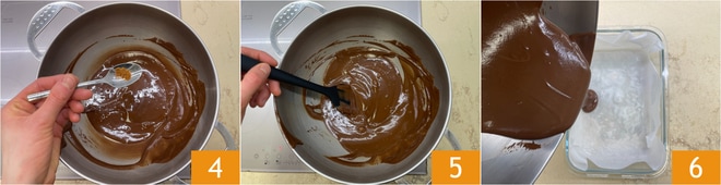 Añade la guindilla en polvo 4 y mezcla nuevamente 5. Vierte todo en un molde de 20x16 cm forrado con papel de horno 6. Nivela y deja solidificar en el frigorífico hasta que esté sólido; tardará unas 2 horas.