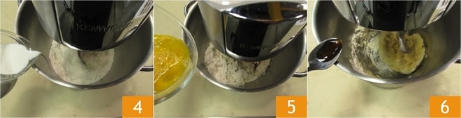 Acciona la batidora a velocidad moderada y vierte la leche poco a poco 4. Añade los huevos poco a poco para no sobrecargar la masa 5 y aromatiza con el extracto de vainilla 6.