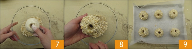 Cubre las manzanas con la mezcla de galletas y avena 78. Coloca las manzanas en una bandeja cubierta con papel de horno 9.
