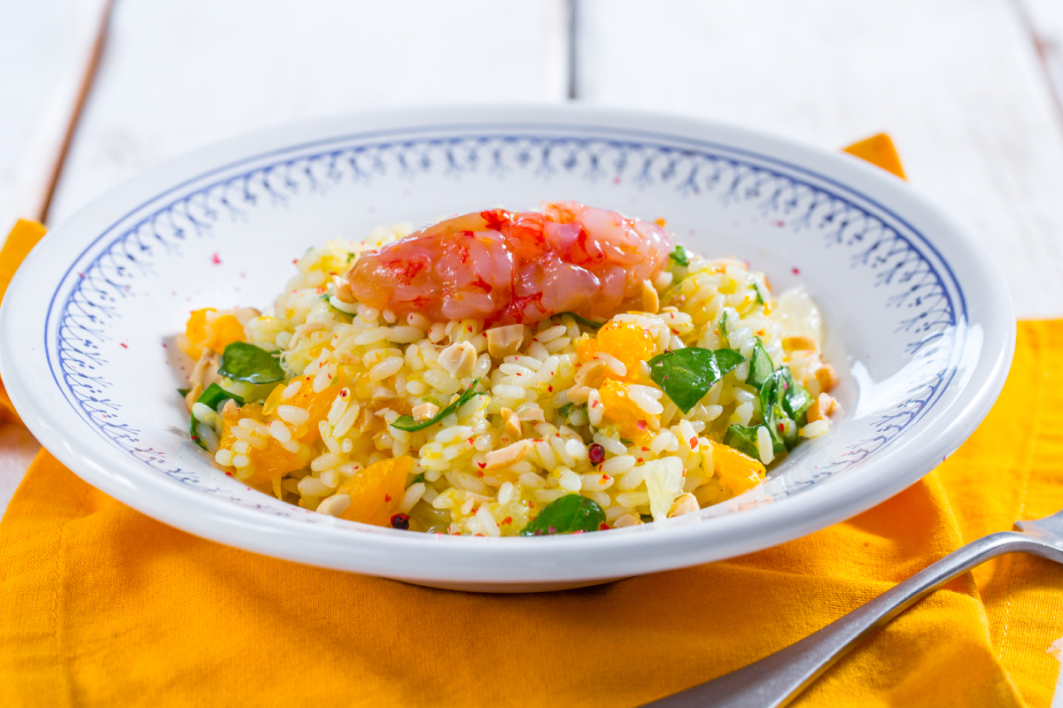 Damos la bienvenida a la temporada estival con un plato único rico y genuino: la ensalada de arroz con cítricos, espinacas y gambas, tan fresca y colorida que te conquistará al primer bocado. Hemos elegido los gambas rojas de sabor delicado para combinar con un aderezo especial de notas cítricas, realizado con una mezcla de naranjas, limones y limas, ¡un concentrado de sabor y vitamina C! Sencilla pero al mismo tiempo refinada, esta fresca Ensalada de arroz es perfecta para reponer fuerzas en los días más calurosos, que reclaman ligereza en la mesa. ¡Ven a descubrir nuestra receta simple y apetitosa!