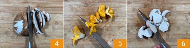 Hagan lo mismo con los portobellos 6, los rebozuelos 5 y los porcini 6.