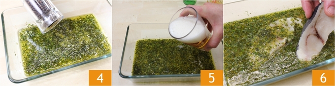 Sala y pimienta 4 y finalmente añade la cerveza doble malta 5. Sumerge las rodajas de pez espada en la marinada 6 y déjalas reposar durante al menos una hora o si quieres prepararlo con antelación, toda la noche.
