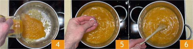 Una vez se haya ablandado, añade la salsa de tomates amarillos 4. Sala 5 y cocina a fuego lento durante unos 20 minutos 6.