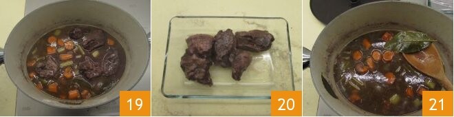 Mientras tanto, el estofado también estará listo 19, retira la carne y resérvala 20. Retira el laurel 21