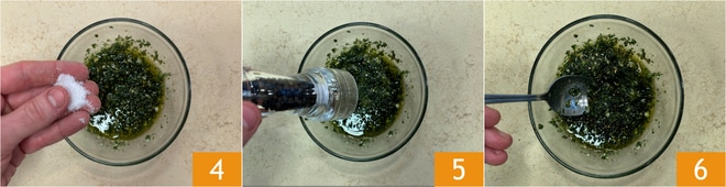 Ajusta la sal 4 y la pimienta 5 y mezcla 6.