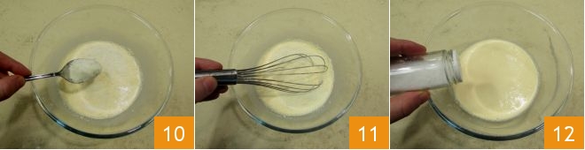 Añadid el queso rallado 10, mezclad nuevamente 11, finalmente ajustad de sal 12.