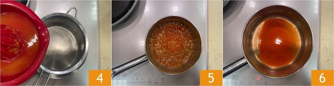 Vierte el jugo filtrado en un cazo 4 y reduce a fuego alto 5 hasta obtener una salsa densa 6; tardará unos 5 minutos.