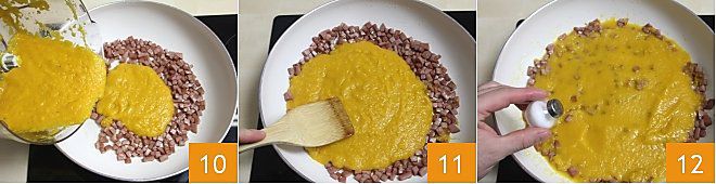 Añadid la crema de pimientos a la mortadela 10 y cocinad a fuego medio durante unos minutos mezclando con una cuchara de madera 11. Ajustad de sal y pimienta 12. Mientras tanto, poned a cocer los espaguetis en abundante agua hirviendo con sal.