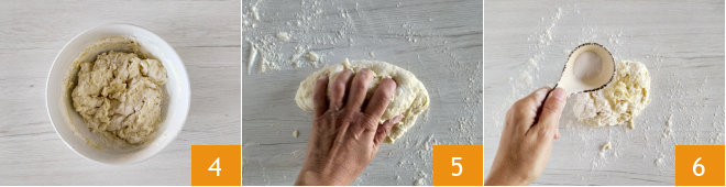 Cuando tome consistencia 4 da la vuelta a la masa sobre una superficie ligeramente enharinada y sigue trabajando 5. En este punto, incorpora la sal 6.