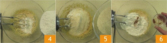 Ahora añade la harina 00 4, la harina de almendra 5 y la canela 6.