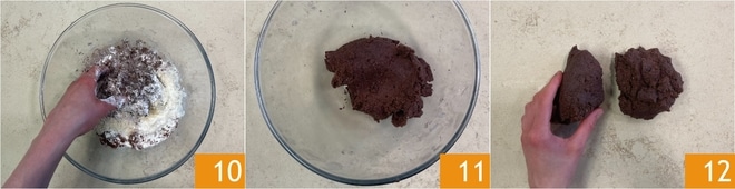 Amasa con las manos 10 para incorporar los polvos de manera homogénea 11. Divide la masa obtenida en 2 partes 12.