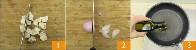 Para preparar los garganelli con espárragos y gorgonzola, corta en cubos el gorgonzola y mantenlo a temperatura ambiente 1. Limpia y corta en rodajas la chalota 2. Calienta un poco de aceite en la sartén 3.