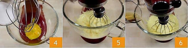 Entonces prosigue con la preparación. Para el helado de ricotta se usan los huevos crudos. Si quieres, puedes pasteurizarlos consultando el procedimiento de la Escuela de cocina, haciendo clic aquí: cómo pasteurizar los huevos. Empieza a montar las yemas con el azúcar glas: pon las yemas en una batidora (o en un cuenco grande si usas una batidora eléctrica o un batidor manual) y añade el azúcar glas tamizado 4. Luego monta los ingredientes hasta obtener una crema clara y espumosa 5. Después añade el ron (o el marsala), continuando a montar muy delicadamente la mezcla 6.