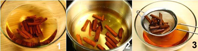 La primera operación para preparar la gelatina de canela es dejar macerar durante toda una noche las ramas de canela en medio litro de agua 1, de modo que liberen en el líquido todo su aroma. Al día siguiente, hiérvelas en el agua 2 y déjalas reposar todo el día, luego filtra la canela y reserva el agua.