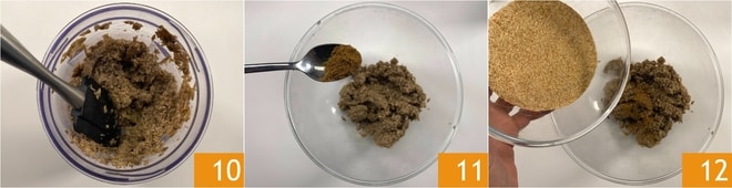 Acciona el procesador para triturar finamente los champiñones 10. Vierte el puré en un bol, luego añade el comino 11 y el pan rallado 12.