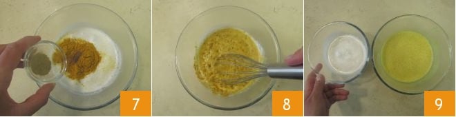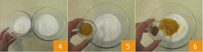 y el jengibre en polvo 7. Mezcla bien con un batidor 8 y coloca ambos boles en el frigorífico durante 5 minutos 9.