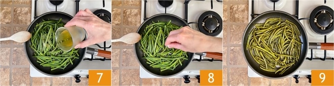 Desglasa con el vinagre de manzana 7 y añade una pizca de sal 8. Deja que el condimento se espese, revolviendo de vez en cuando, luego apaga el fuego 9.
