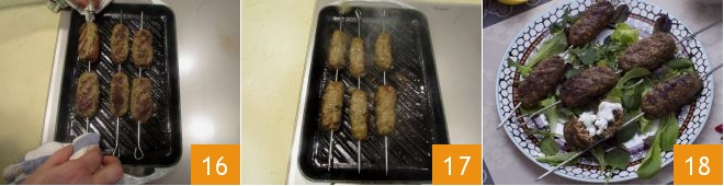 girándola para una cocción uniforme 16. Transcurrido el tiempo necesario 17, apagad el fuego y servid la kofta bien caliente 18.