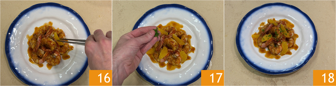 Emplatad los langostinos y adornad con los gajos de naranja reservados 19. Aromatizad con cebollino fresco 20 y servid inmediatamente vuestros langostinos a la naranja 21!
