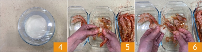 Cubre con film transparente y deja reposar la masa en el frigorífico durante 30 minutos. Mientras tanto, Cómo limpiar los gambones separando la cabeza del cuerpo, pero manteniendo la cola pegada 5, luego haz un corte en el lomo y elimina el hilo interior 6.
