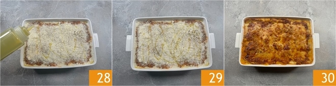y un chorrito de aceite en la superficie 18. Cocina 29 en horno estático precalentado a 180° durante aproximadamente media hora, añadiendo algunos minutos de grill para un dorado extra, ¡si es necesario! Las lasañas al ragú de lentejas están listas para ser servidas 30.
