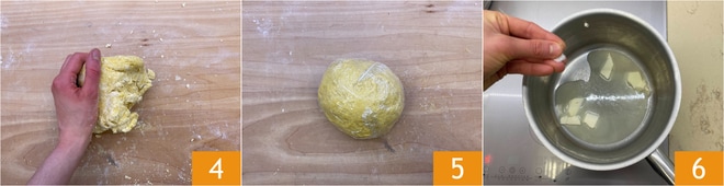 Amasad con las manos 4 hasta obtener una masa lisa y homogénea 5. Envolved la masa en film plástico y dejad reposar en el frigorífico durante 30 minutos. Mientras tanto, dedicad tiempo a la preparación de la bechamel: en un cazo, derretid la mantequilla y rectificad de sal y pimienta 6. Mientras tanto, calentad la leche en otro cazo aparte.