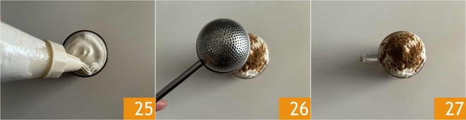 Completa decorando con abundante nata montada 25 y una pizca de canela 26. ¡Tu pumpkin spice latte está listo para disfrutar 27!