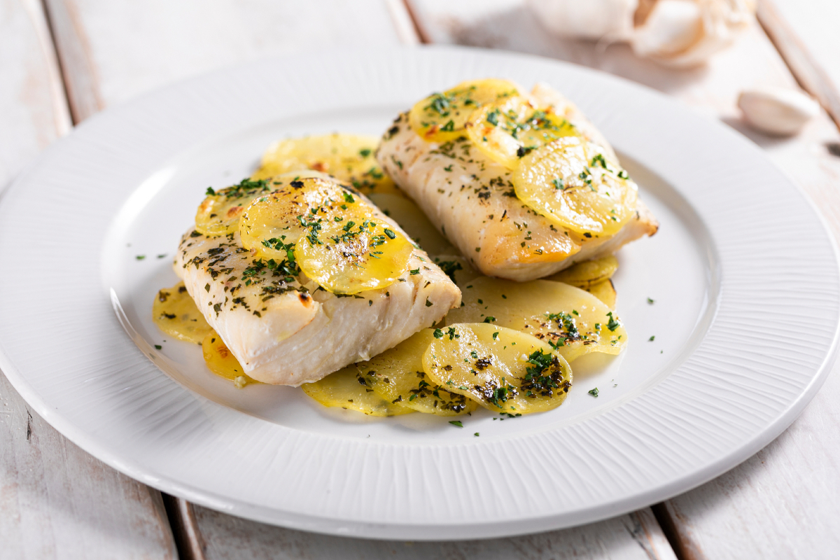 Merluza al horno con patatas