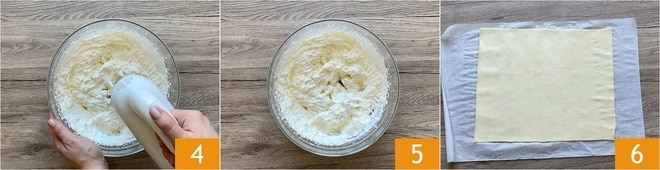 Continuad batiendo 4 hasta que la nata esté firme y consistente 5. Guardad en la nevera y dejad reposar durante 2 horas. Mientras tanto, desenrollad la masa de hojaldre sobre una superficie 6.
