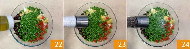 Verted el aceite 22, ajustad de sal 23 y pimienta 24.