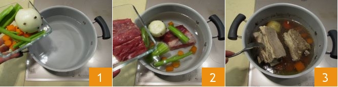 Para preparar los mondeghili (albóndigas milanesas), pon a calentar una olla con abundante agua salada, añade el apio y las zanahorias, cortados en trozos grandes, y la cebolla con los clavos de olor, luego lleva a ebullición 1. Cocina la falda de res a fuego medio 2 hasta que la carne se haya ablandado: tomará al menos una hora; de vez en cuando, elimina las impurezas que se forman en la superficie con una espumadera. Pasado el tiempo necesario 3, apaga el fuego y deja enfriar completamente; desmenuza la carne y transfierela a un cuenco.
