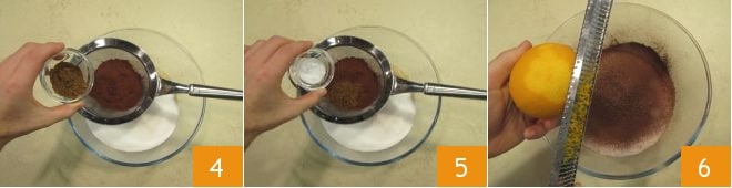 el pisto 4 y la amoniaca 5. Finalmente rallen la cáscara de naranja 6