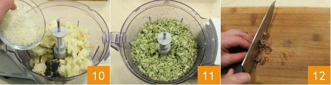 y el Grana Padano DOP rallado 10. Acciona la batidora y tritura hasta obtener un empanado fino 11. Transfiere el empanado a un bol, aparte escurre las anchoas y córtalas en trocitos 12