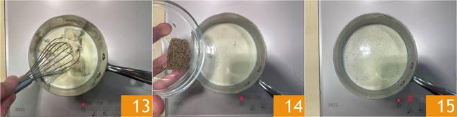 Batid con unas varillas 13 y sazonad con tres cuartos de la pimienta tostada anteriormente 14. Deber is obtener una salsa consistente y homog nea 15. <\/p>