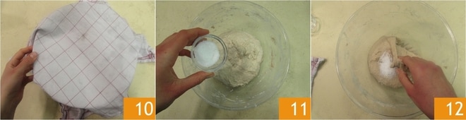 Cubran con un paño de cocina seco y limpio 10 y dejen reposar durante 10 minutos. Pasado este tiempo, agreguen la sal 11 y trabajen durante otros 5 minutos aproximadamente para que se absorba completamente 12.
