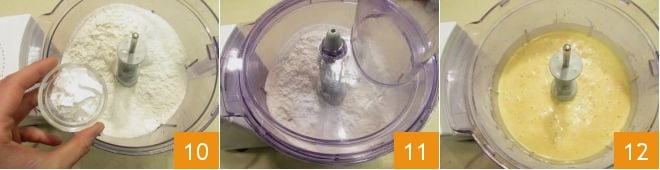 y la levadura para dulces 10. Entonces coloca la tapa y pon en marcha las cuchillas de la batidora 11 hasta que todos los ingredientes estén completamente amalgamados 12.