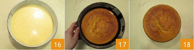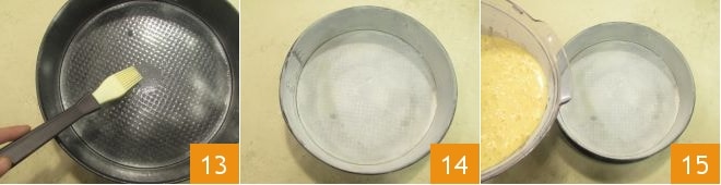 Engrasa y enharina un molde desmontable con un diámetro de 20 centímetros (13-14). Vierte la mezcla dentro 15