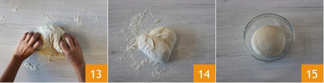 hasta obtener una masa lisa y homogénea 13 14. Tomará unos 15 minutos. Coloca la masa en un bol, cúbrela con film plástico 15