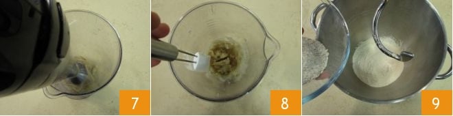 y tritura todo 7 hasta obtener un puré homogéneo 8. Reserva y vierte las harinas en el bol de una amasadora con gancho 9,