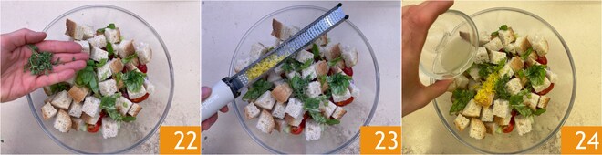 Aromatiza también con el tomillo limón 22, la cáscara 23 y el jugo de limón 24.