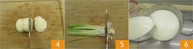 Corta la provola en rodajas de unos 3-4 mm 4. Lava y corta los extremos de la cebolleta, luego córtala finamente 5. Ahora encárgate de la bechamel especial: calienta la leche en un cazo 6.