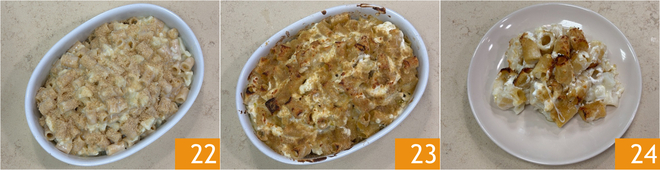Hornea a 200° en modo grill durante unos 10 minutos 22. Cuando esté bien gratinada, retira del horno 23 y sirve de inmediato tu pasta al horno con coliflor vegana 24!