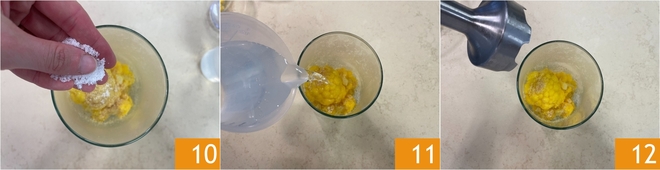 Sala 10 y vierte un poco de agua de cocción para ajustar la consistencia 11. Tritura con la batidora de inmersión 12.