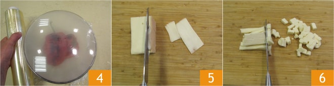 Cúbrelos con film transparente y reserva para que se enfríen un poco; este paso permitirá retirar la piel más fácilmente. Pon a calentar el agua para cocinar la pasta, y añade sal cuando empiece a hervir. Corta el Taleggio D.O.P. en rodajas 5 y luego en pequeños cubos 6.