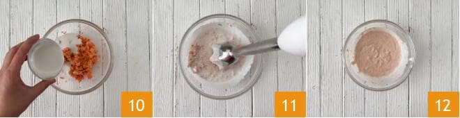 Diluíd con la nata 10 y volved a triturar 11 hasta obtener una mezcla cremosa 12.