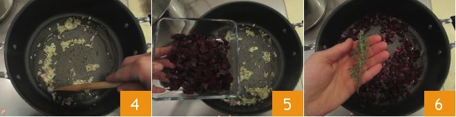 Déjalo dorar unos instantes 4. Añade la remolacha 5 y perfuma el condimento con tomillo deshojado 6.