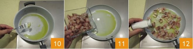 Cuando esté dorado, retíralo 10 y añade los trozos de caballa 11, ajusta con sal 12 y pimienta.