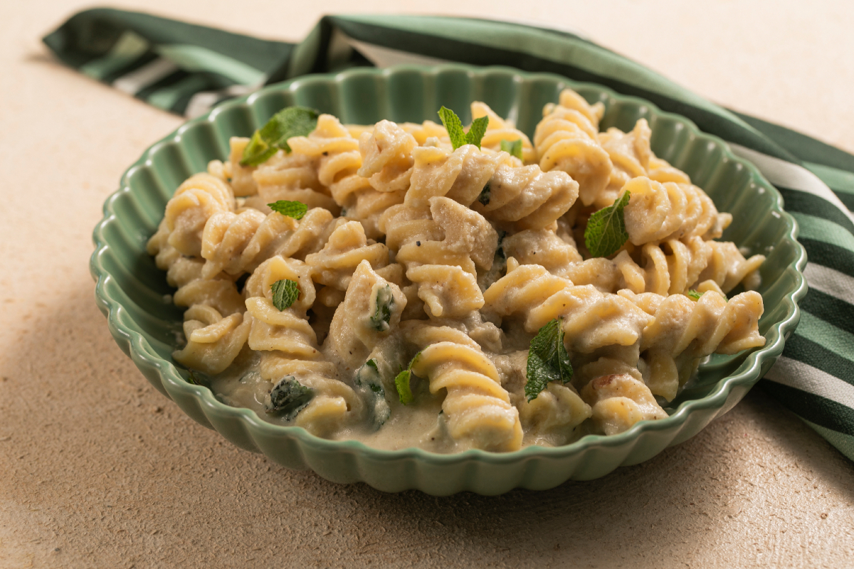 La pasta con berenjenas en blanco cremosa es la receta salva-cenas definitiva que revolucionará vuestros primeros platos vegetarianos. Si buscáis una idea genuina, sana e increíblemente sabrosa para enriquecer los menús de la semana, este plato es la respuesta perfecta: la dulzura de las berenjenas blancas se transforma en una crema envolvente que abraza la pasta, proporcionando una textura aterciopelada sin empachar.