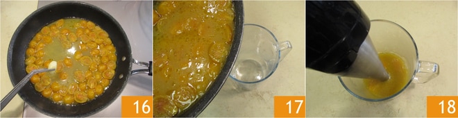 Una vez listos, elimina los dientes de ajo 16, vierte la salsa en una jarra 17 y tritúrala con una batidora de mano 18. Ajusta de sal y pimienta.
